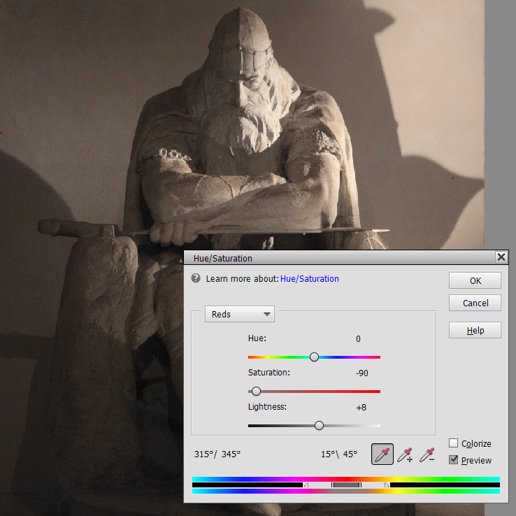 Lyset på figuren var varmt. Derfor er der stadig lidt rødt