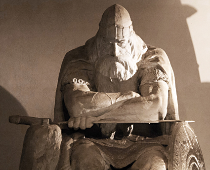 1907 en skulptur af den slumrende Holger Danske med korslagte