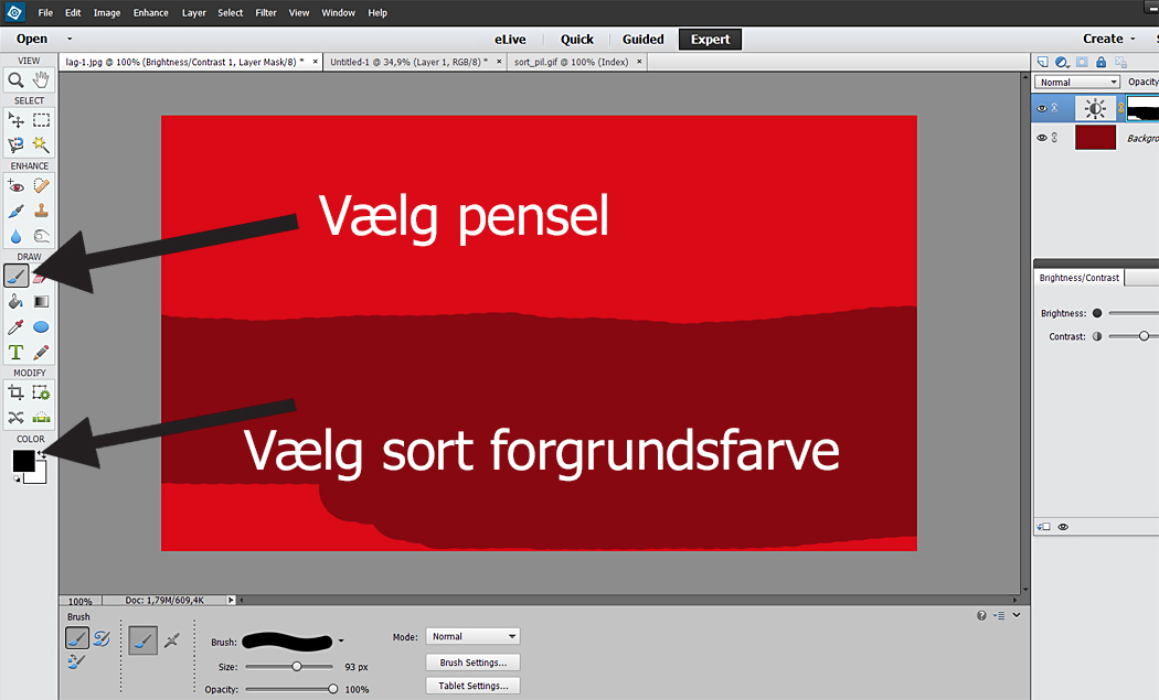 Opgave 3: Kopier billedet og sæt det ind i Elements. Prøv at lave justeringslag med Levels, Hue/Saturation og Brightness/Contrast.