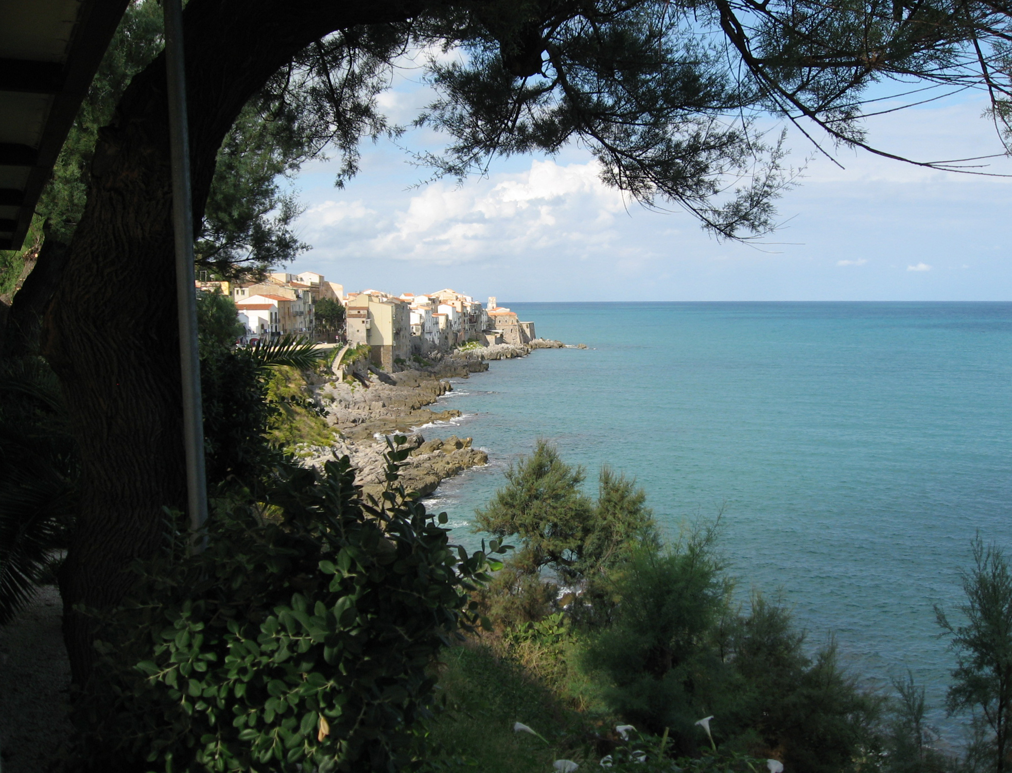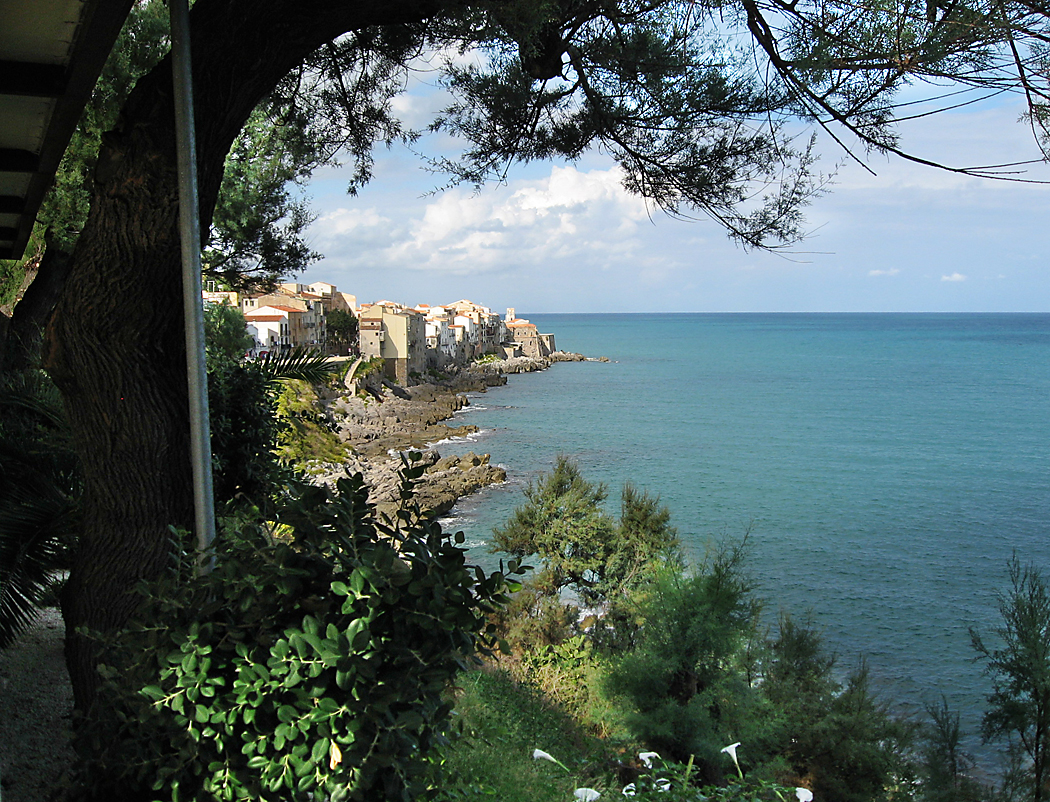 forgrunden. Havet og himlen er dækket med en sort pensel,
