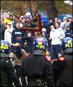 prøvet at skille hooligan fansene fra hinanden, og lukke dem ud fra stadionet