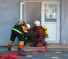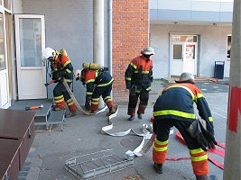 Røgdykkere parate til at gå ind i bygningen |