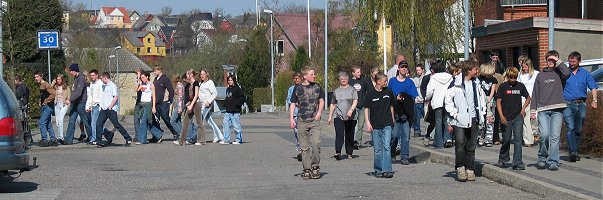 Efter en halv times tid var det hele overstået, og elever og personale kunne vende tilbage til arbejdet. Opholdet i det fri blev velsignet med godt og varmt vejr. Mange priste sig lykkelige over, at det ikke var en dag med kulde, regn og blæst, der var blevet valgt til øvelsen. | |||
