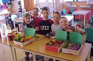 I 1. klasse blev der leget købmand. Foto: Per Lund |