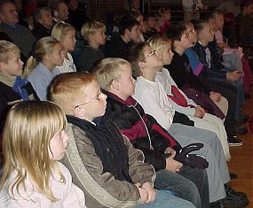 Et indbudt publikum fra Rosendalskolen og bedsteforældre overværede generalprøven 26.11.2002 | |||