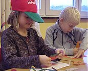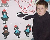 Mads, 2.b, holder tungen lige i munden | Malene, Kasper, Benjamin og Malthe, 1.a, sammen med Gitte Palsgaard | |