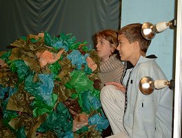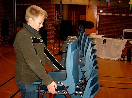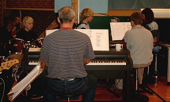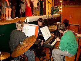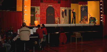 Torsdag, den 20. november 2003. Der kommer mere og mere på scenen, og i dag var der orkester på til prøverne. |