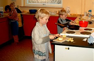 I hjemkundskab er der dyb koncentration og i Thyges bygning er der gang i pyntning. |