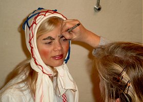Suffløren og instruktøren. Kate Kolling Andersen, er på arbejde | ||