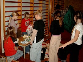 I den gamle sal laves der boder med forskellige aktiviteter, der kan prøves i løbet af aftenen. | |