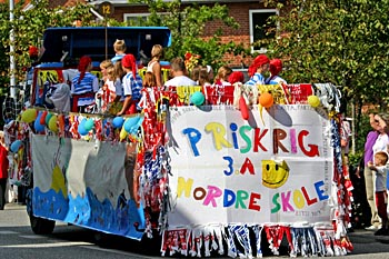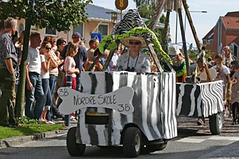 I flot sensommersol viste elever fra Nordre, at de kan lave lave flotte vogne til ambu-optoget. |