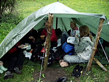 Valgholdet friluftsliv kom på en lidt våd tur 19.-20. maj. Som det ses på billederne, indbød vejret heller ikke til den lettere påklædning.