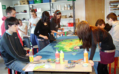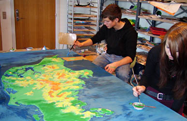 Det tager sin tid at bygge et land, men helt så længe som i virkeligheden kom det dog ikke til at tage. 9.b havde et hængeparti fra 8. klasse, hvor de sammen med deres geografilærer, Søren Andreasen, kastede sig ud i at lave en topografisk model af Danmark.