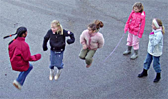 Fuglene begynder at kvidre, og de første pollenvarsler dukker op. I skolen er sjippetovet en sikker forårsbebuder. |