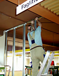 Skolebiblioteket får skåret en bid af. Der skal indrettes et nyt kontor til sekretæren.