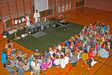 i en 1½ l flaske, der indeholder lidt vand |